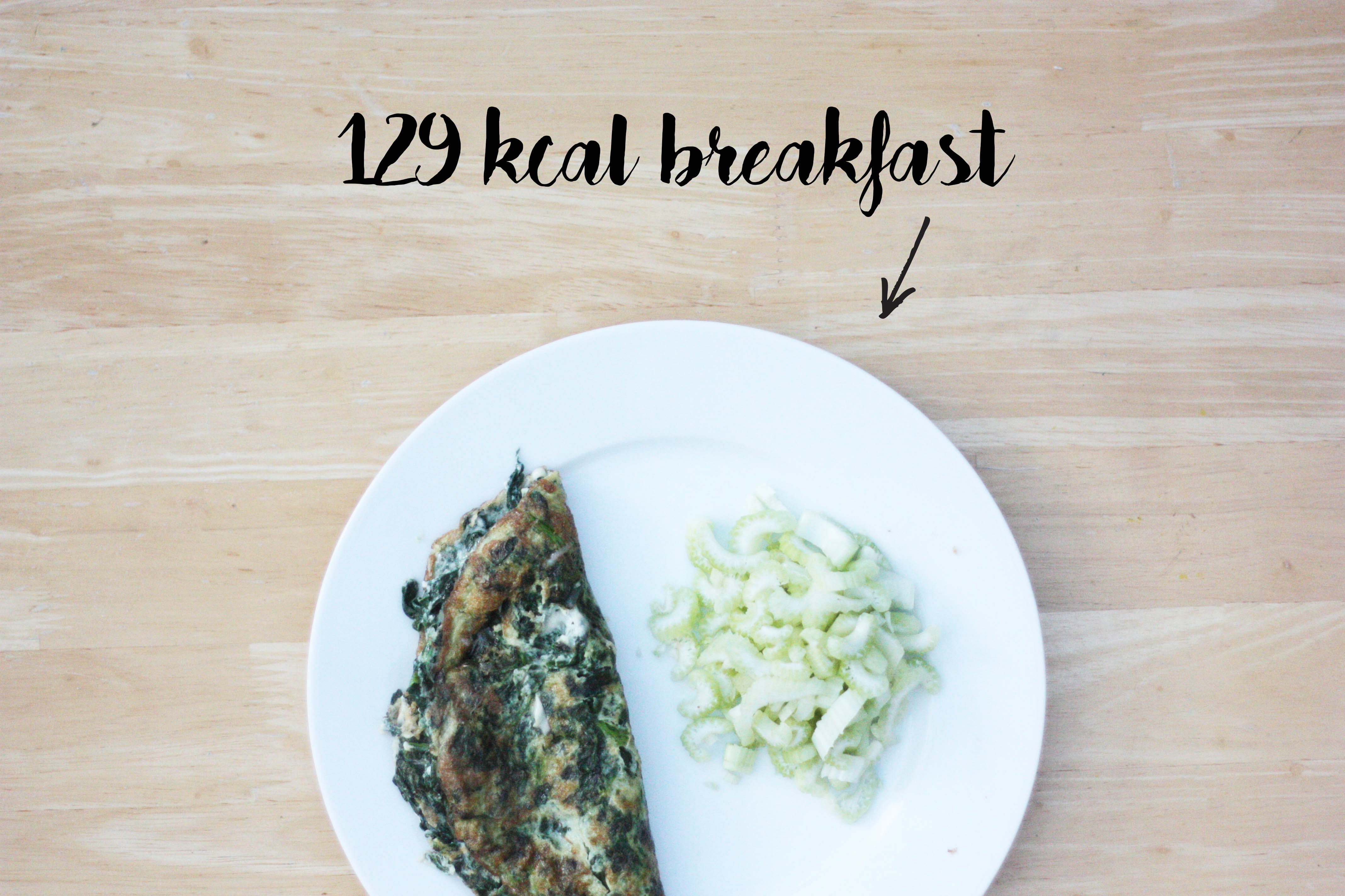What are you’re looking at is an egg white omelet, 1 whole egg and 2 egg whites, with frozen spinach which is hands down the most incredible thing ever. Its ridiculously cheap and its already been steamed so you get loads for your buck! I used 100grams (weighed when frozen) and 2 stalks of celery. I used to hate celery, but the more I eat it, the more I get used to it and its a pretty tasty covered in hot sauce and by covered, I mean covered.